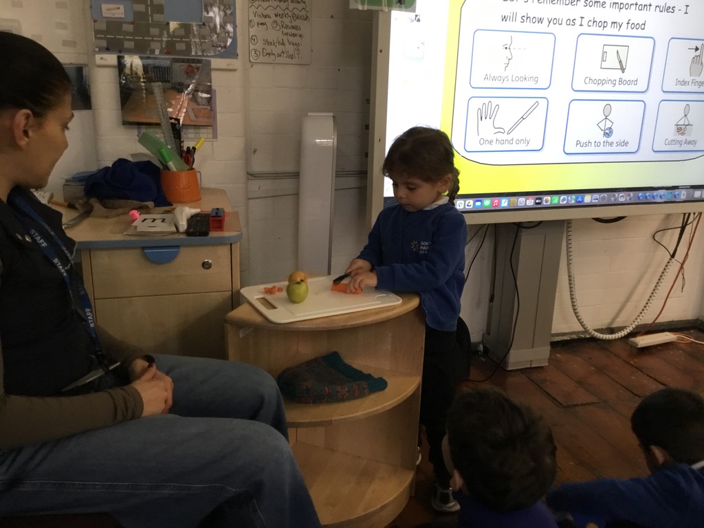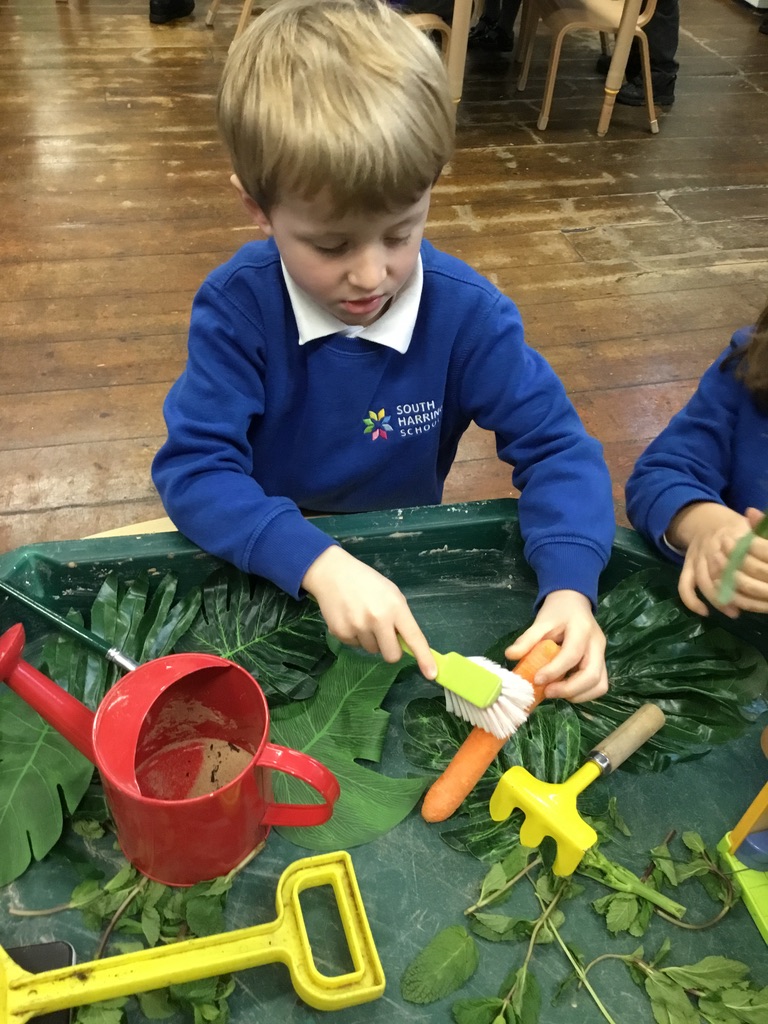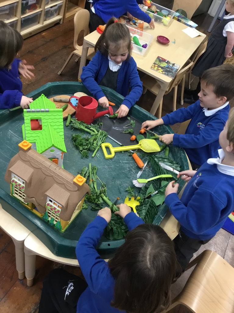 Holly Class and Rowan Class have been exploring a series of books including ‘Oliver’s vegetables’ by Alison Bartlett and Vivian French which explore the main character’s (Oliver) relationship with fruit and vegetables. As Oliver explores the variety of fruit and vegetables we can find in both gardens and supermarkets, our pupils created their own vegetable gardens! It was a great opportunity to practice our fine motor skills and work in chopping food and making compost, fruit kebabs and fruit salads. It tied into our oral hygiene topics of exploring balanced diets and the importance of keeping our teeth healthy. We had a fantastic time exploring where our food comes from and the importance of making positive choices with the variety of foods that we eat.