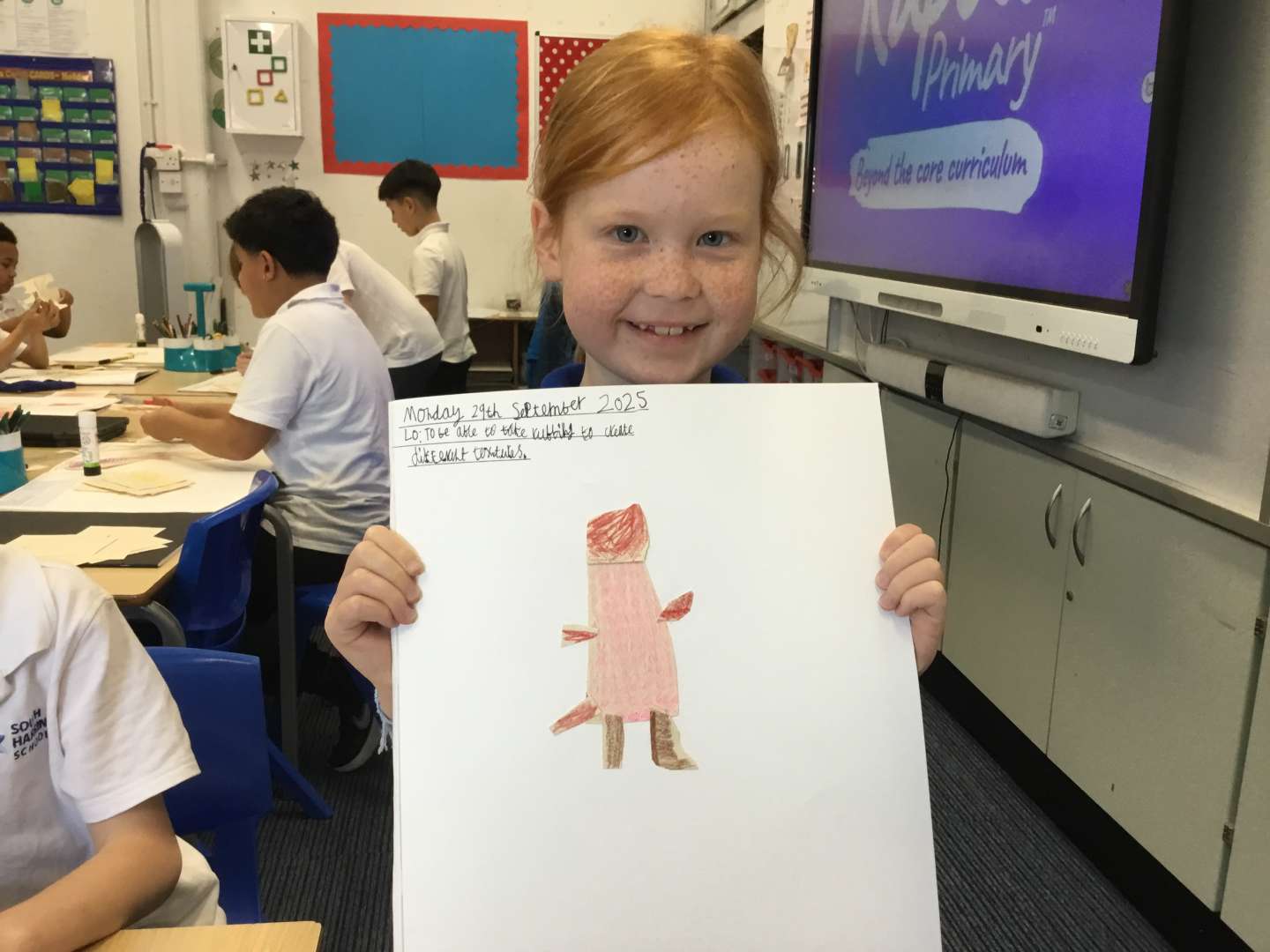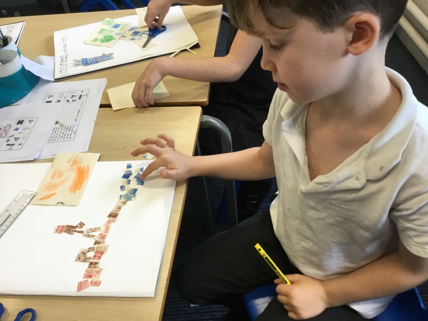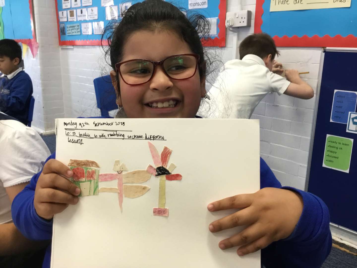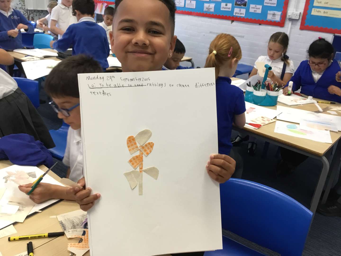 : In our Art lessons this term we have been developing our observational drawing and sketching skills. As part of this learning, we looked at the artist Max Ernst and his technique of frottage. First, the children used coloured crayons to take rubbings of different textures they found both in the classroom and at home. Then they carefully tore, cut and arranged their rubbings to create the varied and imaginative compositions you can see in these photos…