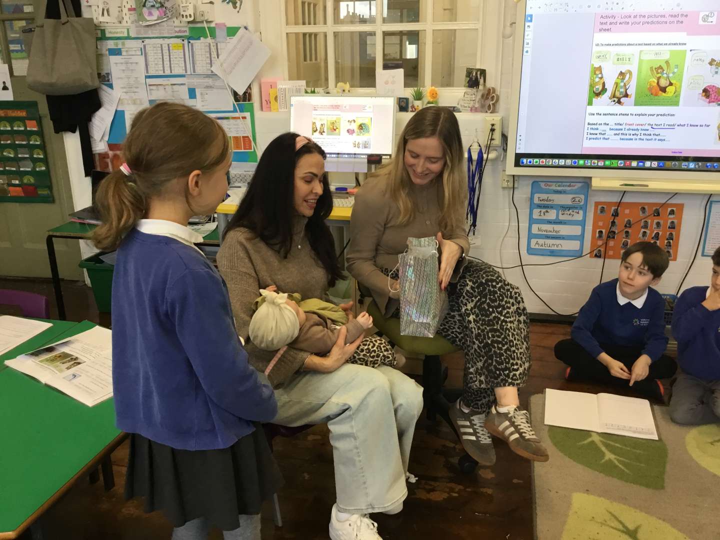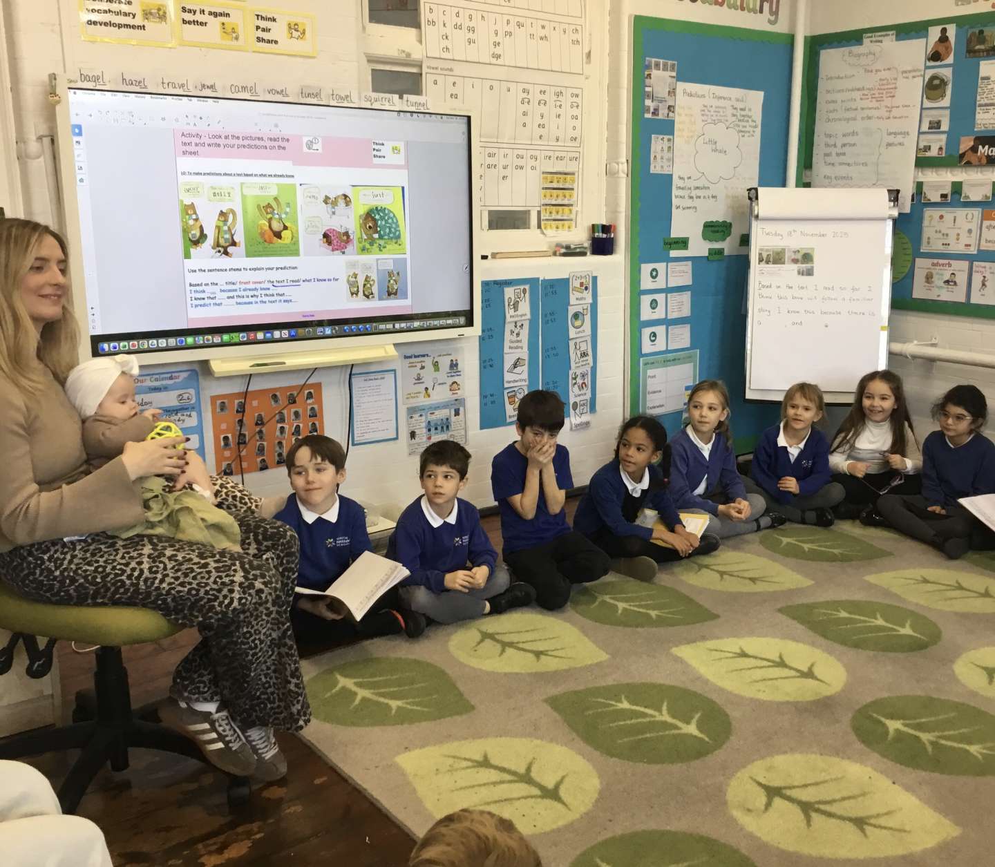 In science, Year 2 have been learning about the stages of human development, such as baby, toddler, child, adult, teenager, adult and elderly. Last week, the children wrote scientific questions for Harley, to find out how she cares for her new baby Delilah, who is just 5 months old. Harley visited both classes with Delilah and the children had to opportunity to ask their questions and learn about how babies change as they grow.