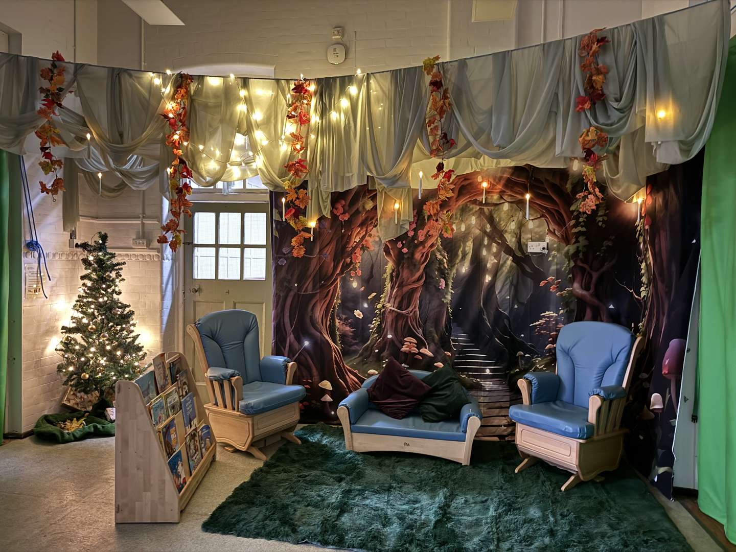 Over the past few weeks, our Reception Team have been hard at work designing and creating a beautiful new reading space for Rowan and Holly Class. This thoughtfully crafted room has been developed to inspire a love of reading, spark imagination, and offer a calm, cosy environment where children can relax with a story.